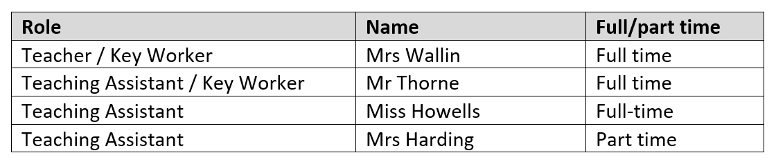 We operate a ‘Key Worker’ system. This means your child will be assigned a member of staff who they are linked to and who becomes the key person that you liaise with regards to daily care and learning. This will not always mean that they are taught or supported by the same person as we will rotate staff to ensure all children are well known and understood by all.